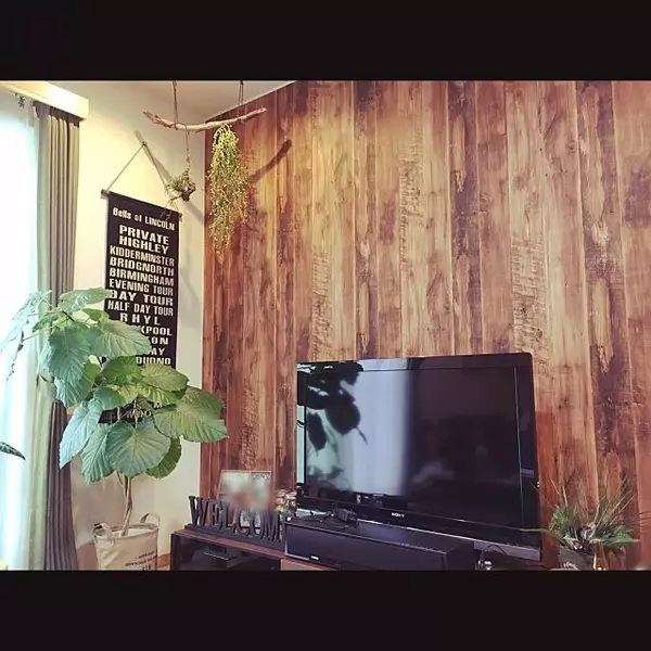 リビングdiy 板壁柄壁紙でナチュラル可愛い空間作り 暮らしニスタ